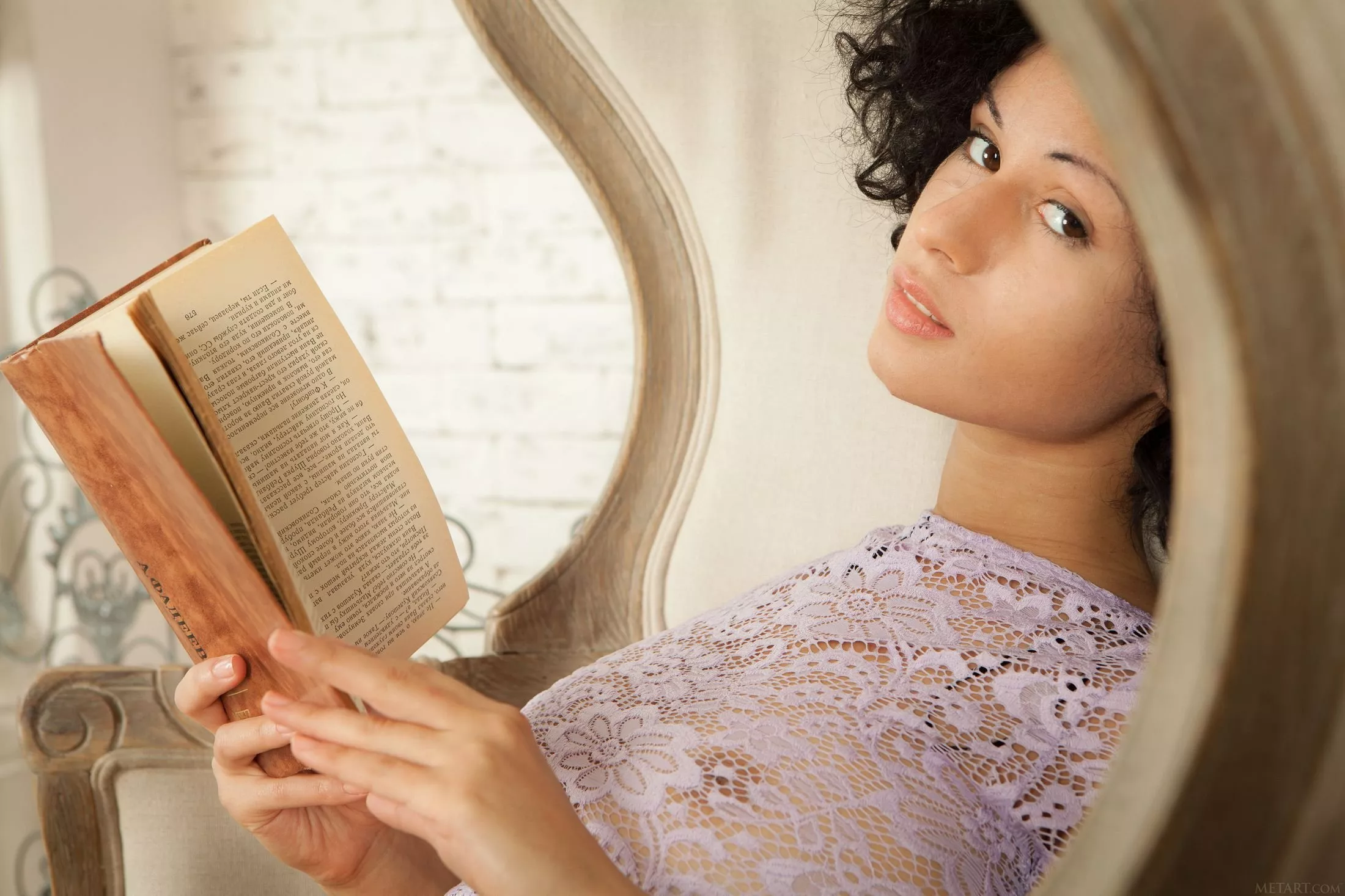 Портрет молодой красавицы в книжном уголке — Pammie Lee